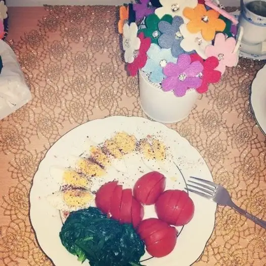Sabah 1 yumurta 1 activia bir parça peynir yeşillik 1 avuç ceviz içi