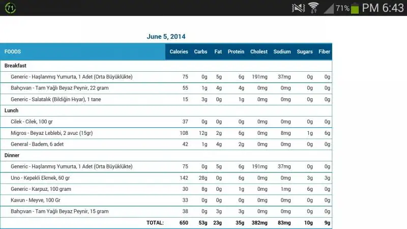 Akşam: salata, 1 kase yayla çorba, biraz kiraz ve karpuz