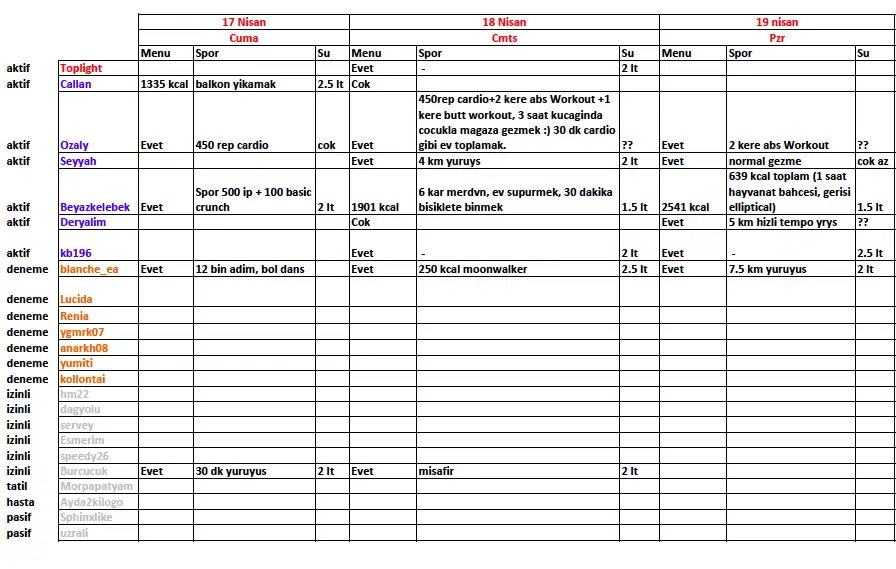 Haftada bır tartılıyorum buraya sık ıgramaya calıscam ama listeye gırmek ıstemıyorummm stres oluyorum cunku soyle yapabılırız cuma bıldıreyım ama listeye gırmeden elimden geldıgınce de gun içinde gelirim cok ısrar ettınız gel dıye ondan