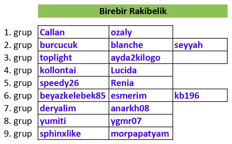 Seninle de rakibe oluruzz sevindim bak şimdiluciday la da rakibe olabiliriz iyi olur hem kilolarımız yakın hemde ikimizde pek yemiyoruz gibi :))