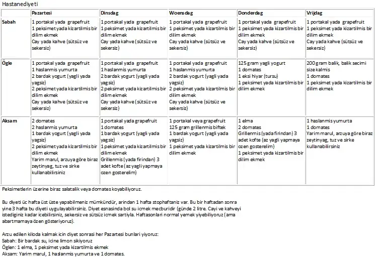 ama hafta sonuda dikkat etmen lazım serbest diye gömülürsen 5 günde verdiğin kiloyu geri alırsın canım:)Eki Görüntüle 1824621 Kizlar kadinlar kulubünde buldum bu listeyi ilk hafta 3 kilo sonraki hafta 2 kilo gidiyormuş hafta sonuda özgürsün tam benlikbu sabah itabariyle başladım