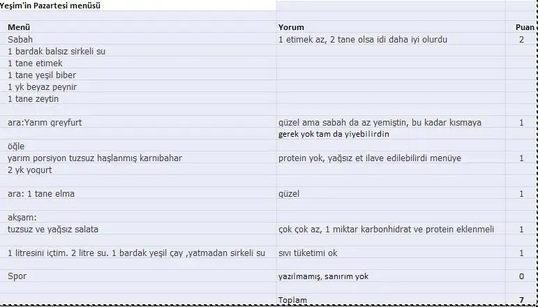 AKŞAM:iki servis kaşığı bakla,bir kaç kaşık domates soslu makarna,salata,iki yemek kaşığı yoğurt