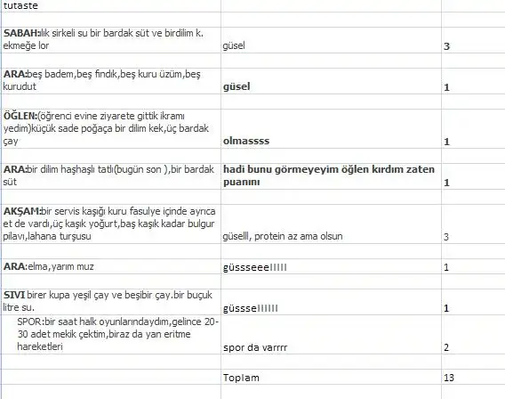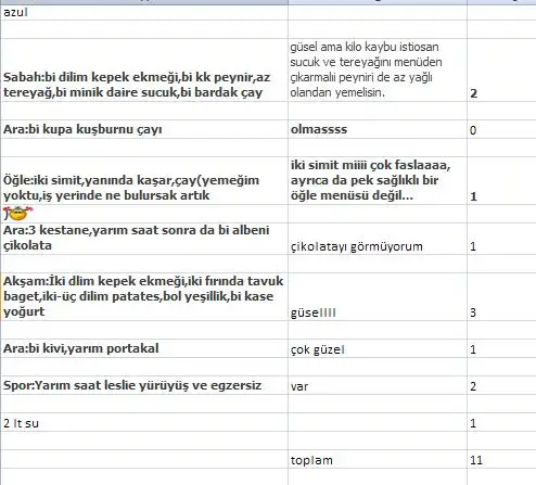 bu aslında bır dıyet lıstesı degıl ne kadar dengesız beslendıgımı gostermek ıstıorm yardım ıstıorum bıyerde aslında