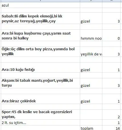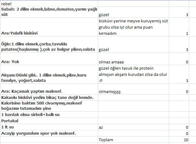 Sağol arkadaşım,pek kilo verdirici bi menü değil ama mecburiyetten bazen böyle oluyo,