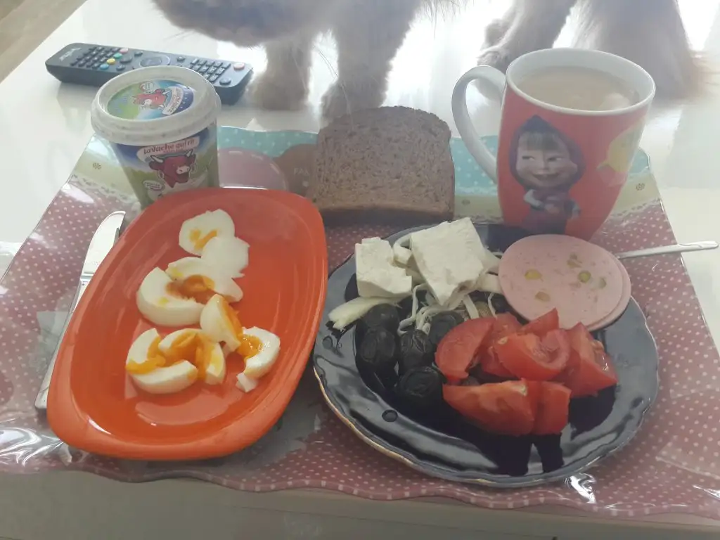 Sabah menüm : 1 yumurtadan omlet,kk peynir,4 zeytin. 4 fincan şekersiz çay. Çay tiryakisiyim