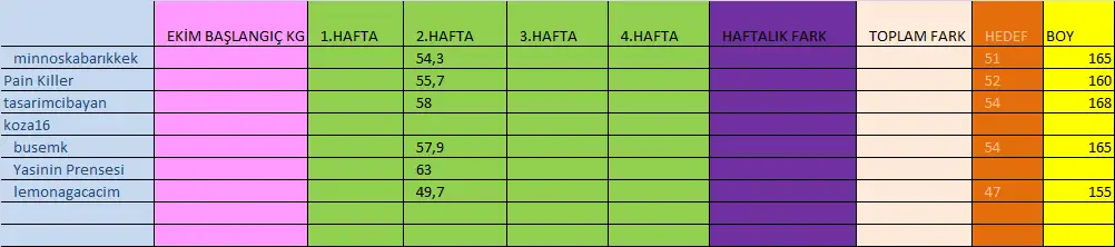 kilo bildirimi yapanları tabloya ekledim gruba katılmak isterseniz kilo bildirimi yapmanız yeterli..