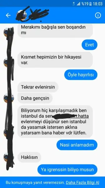 Sabah mesaj geldi boşandın mi diye bende kader kısmet diyecek zannederken evlenmeyi dusunursen haber ver yazmasın mi (uzun hali asagida)