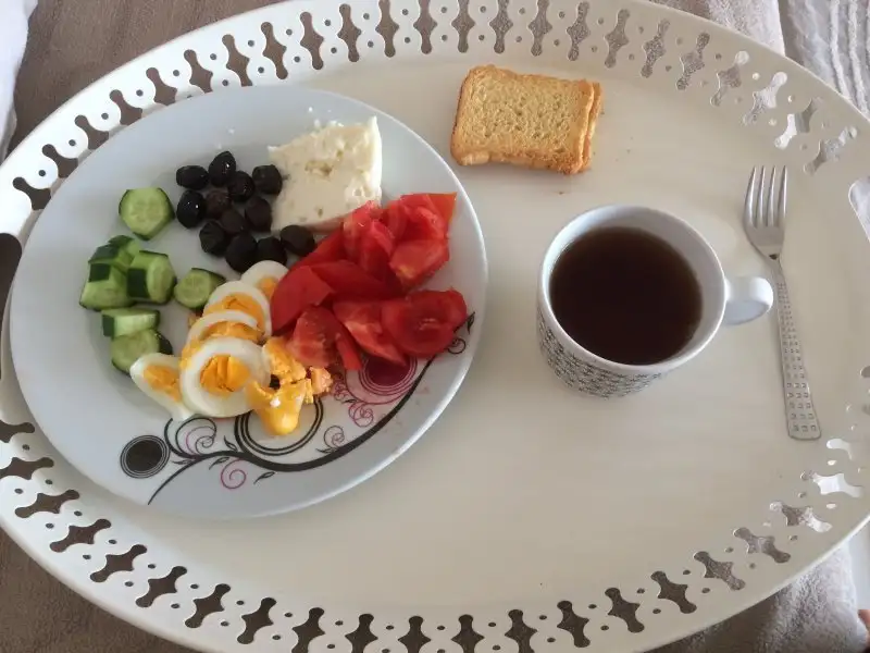 Akşam: bir porsiyon mercimek yemeği, bir buçuk dilim kepek ekmek, bir kepçe çorba