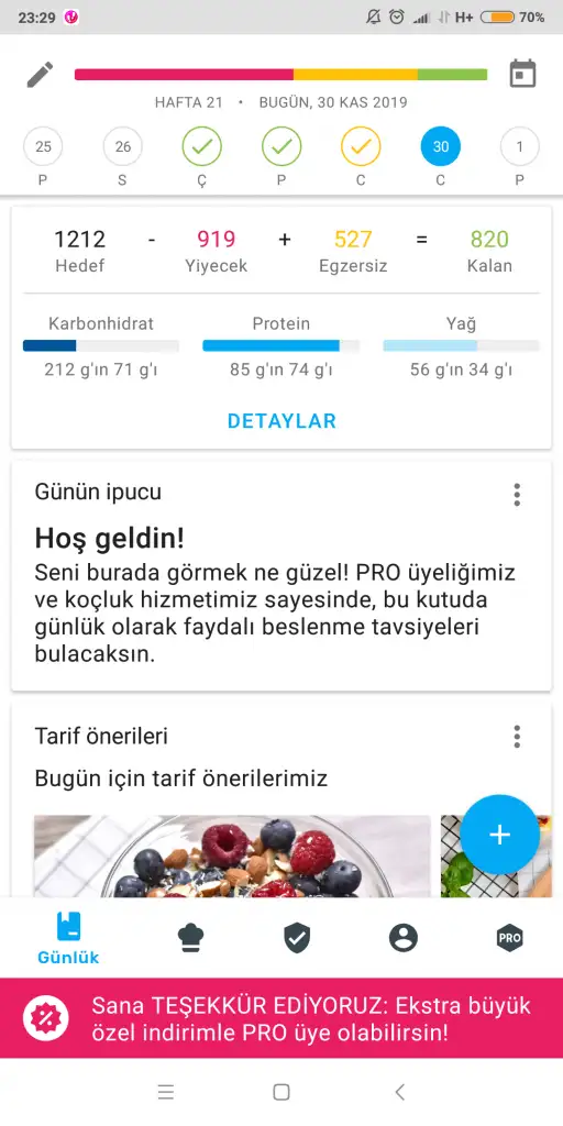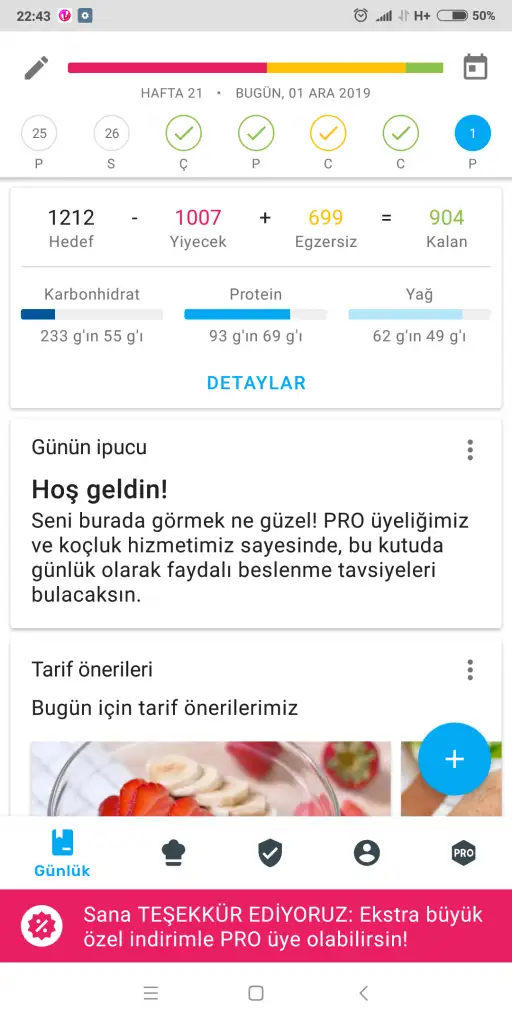 19:30 akşam yemeği 1 kase arpa şehriyeli çorba, 5 orta boy köfte, salata