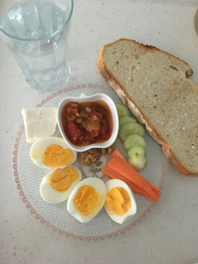 Sabah 10.00..2dilim tb.ekmek,1yumurta,5zeytin,yarim domates salata biber,1yemek k,tahin pekmez,1b çay
