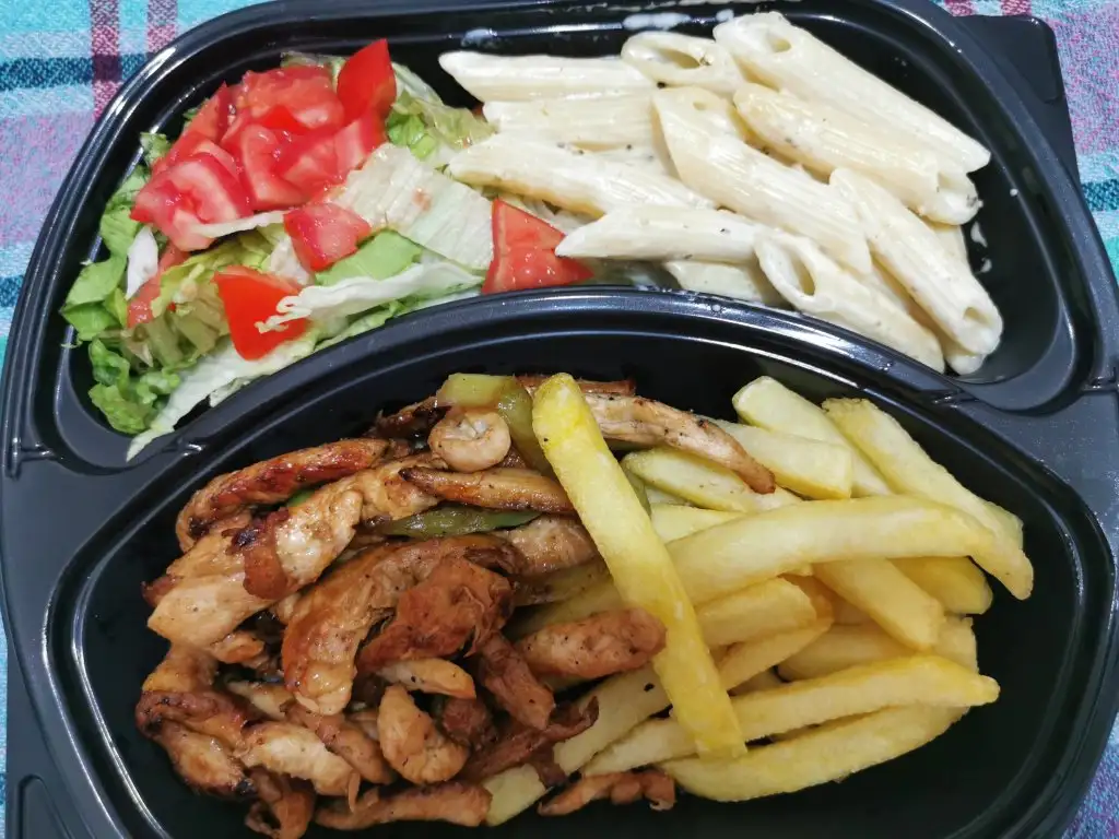 Akşam 5:00 fırında tavuk 3 parça, bol salata
