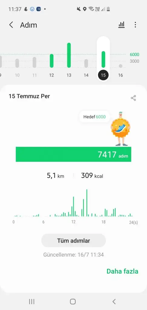15 temmuz persembe =6007 adım =600 adim