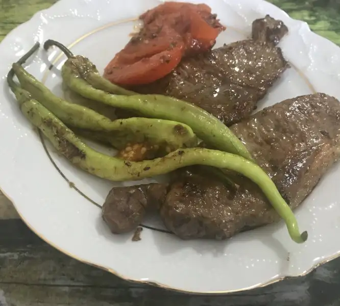 Akşam iki adet biftek, domates, biber