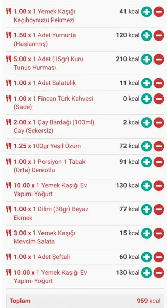 Programda tam karşılığı olmadığından Medine Hurması yerine Tunus’u işaretledim kaloriler aynı zaten
