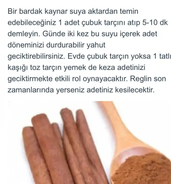 Tarçın bende de fazla kullandığımda regl gecikmesi yapıyordu.