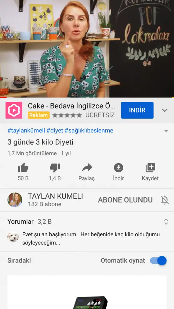 3 günde 3 kilo diyeti evet. 3 farklı videosu var hangisini seversen , link göndermesini beceremiyorum 😅😅😅