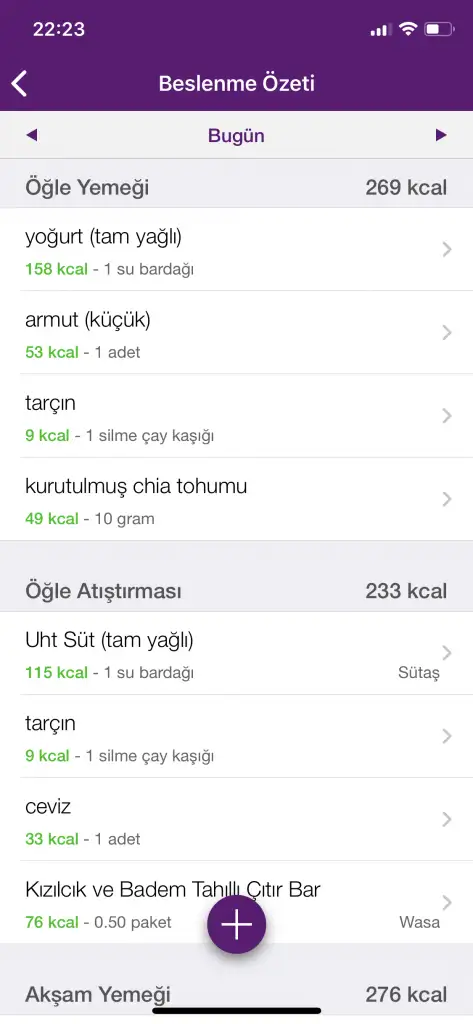 Saat 15:00 yarım kase cacık, 1 mürdüm eriği