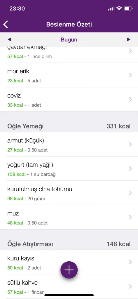 Saat 12:10 öğle yemeği; yoğurdun sadece yarısını 16:30 gibi yedim.