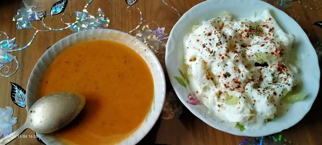 18: yayla çorbası yarım kase bulgur pilavı 4 kaşık et sote 4 kaşık yoğurt