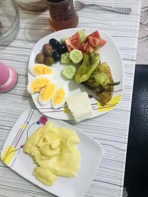 Haşlanmış yumurta peynir zeytin az az domates salatalık yeşil biber kavurma kuymak 2 yemek kaşığı