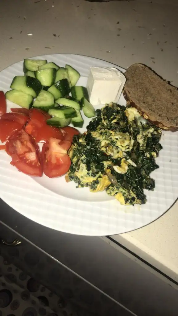 1 üçgen dilim Sebzeli omlet(ispanak mantar biber kaşar)