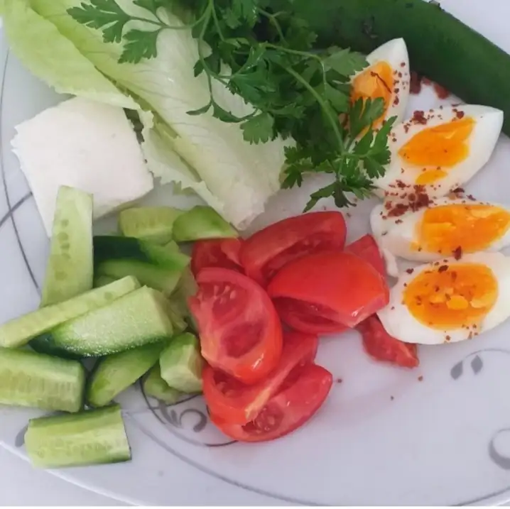 2dilim ekmek,1yumurta,1dilim peynir,7zeytin,