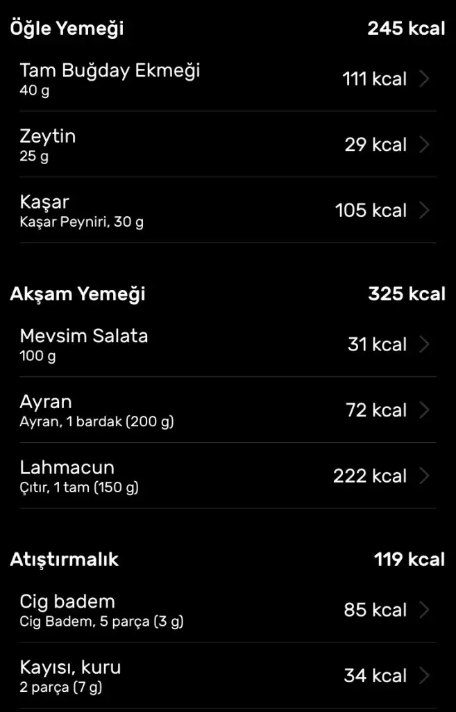 6 yk et sote, 3 kaşık karnıbahar, 2 kase yoğurt (canım çekti nedense) , 2 dilim ayva