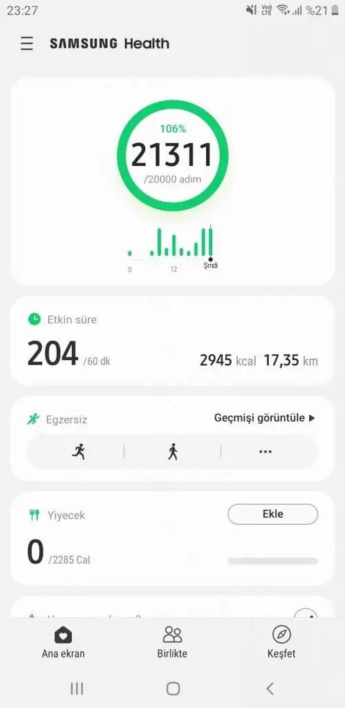 Canim disaridami atıyorsun adimlari vakit nasil buluyorsun bu kadar hayranim gayretineYok yok sevin bugun fazla atamadımzaten sarj makinası bozuktu almadı dersti falan filan derken azcık oldu olsun zeynoşum atmış denp te atmıştır bende biraz daha yürüyeyim paylaşıcam