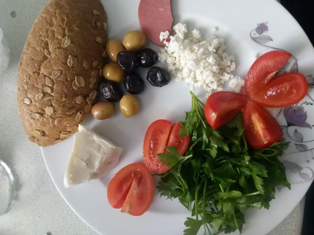 Sabah : 1 haşlanmış yumurta, 4 zeytin, 1 dilim ekmek, maydonoz bir tutam