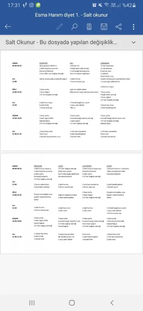 Bu da benim diyetisyen listem canım.Bununla 40 kilo verdim ve hala benzet besleniyorum.İşine yararsa die atayım dedim (arada kilo vermem durunca 1-2 günlük özel diyet yapıodu diyetisyen ama genel olarak ana liste buydu)