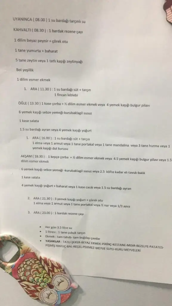 Akşam 2 kepce çorba 3 köfte salata bir küçük kase yoğurt.