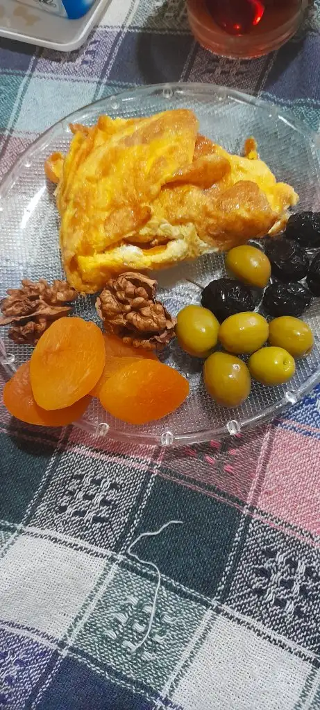 Sabah, 1 yumurtadan peynirli omlet. 4 çeri domates 5 dal roka 5 zeytin bir bardak çay 2 dilim tb ekmeği.