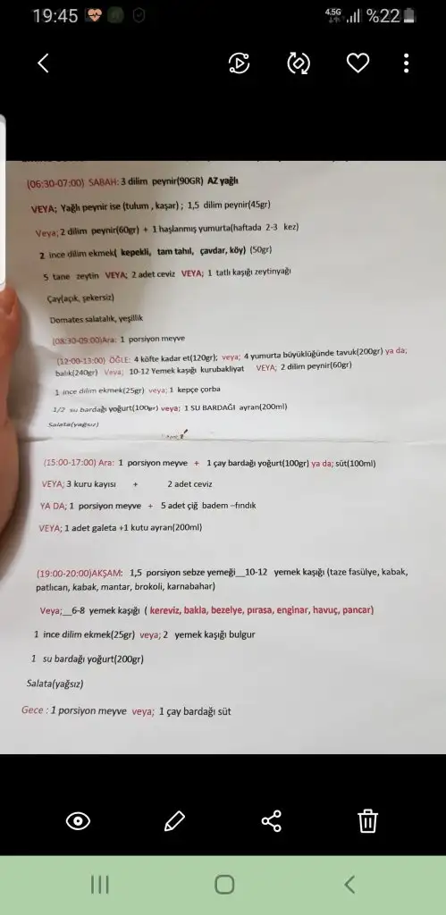 Canım bu benim diyet listem,sana fikir versin die atıyorum.Bununla 30 kilo verdim ama şimdi beden kitle endeksim biraz kücüldüğünden ekmeği azalttım ama listem hala aynı .