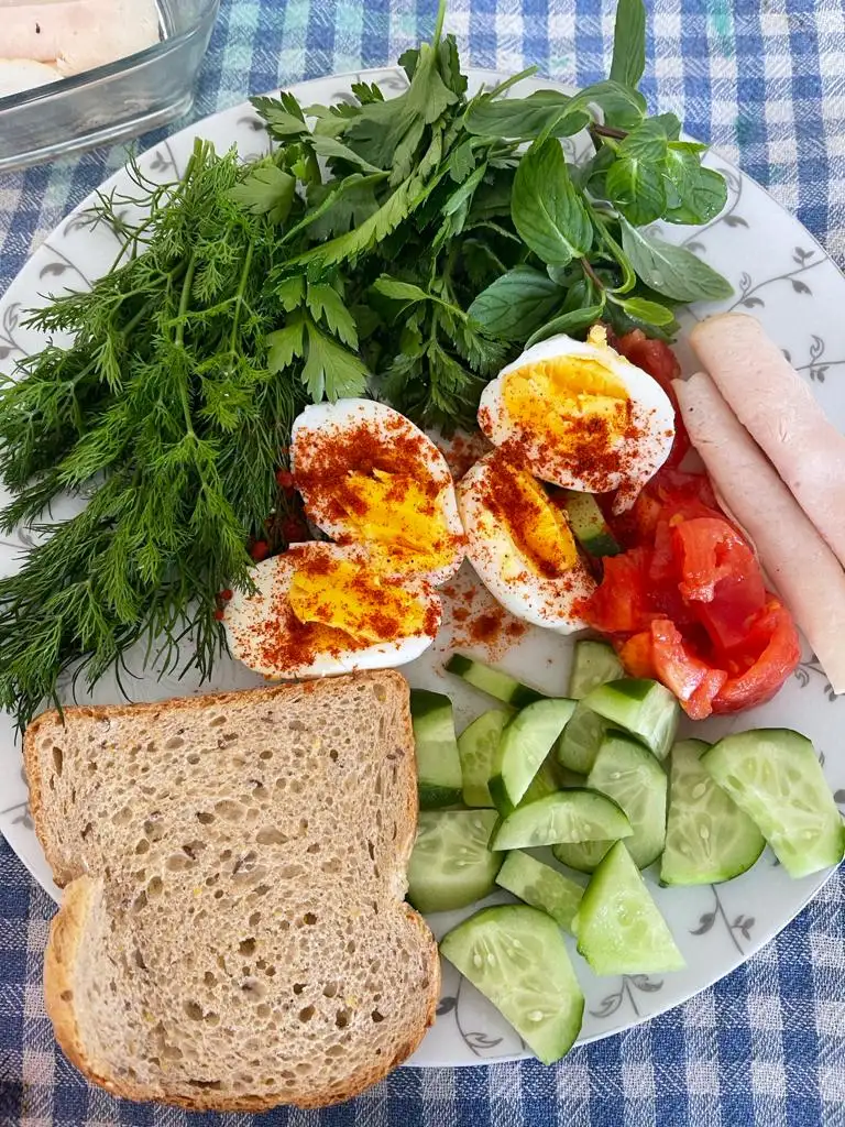 Afiyet olsun canımSabah kahvaltı =2 zeytin bol yeşşilik 3 kibrit çörek otlu peynir bir Dometez +biber salçalı yumurta bir bardak çay