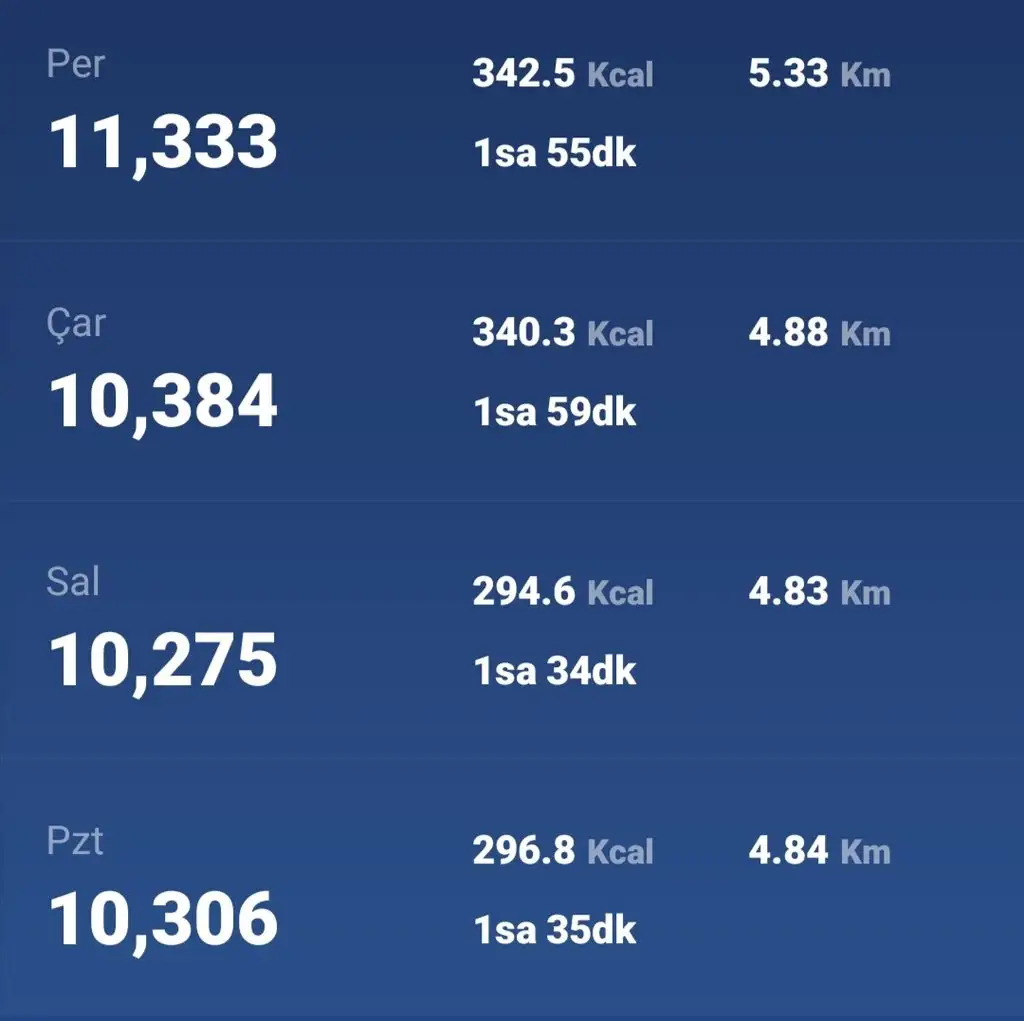 Aslında menüleri iz aynıymış okudum çoğunu ama sporda fark atmışsın kujum hak etmişsin ben 6000 adım altına inmiyorum ama daha çok hareket etmem gerek sanırım