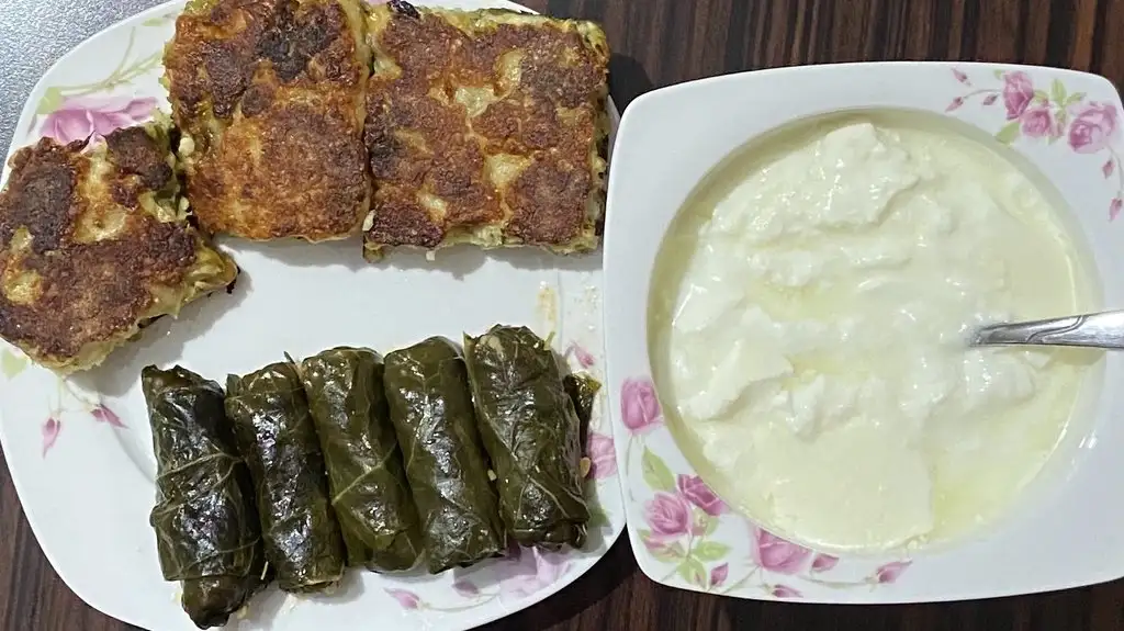 Öğle taze fasulye 1 kase yoğurt 2 küçük dolma 1 dilim tb ekmeği 5 tane acı biber turşusu minik