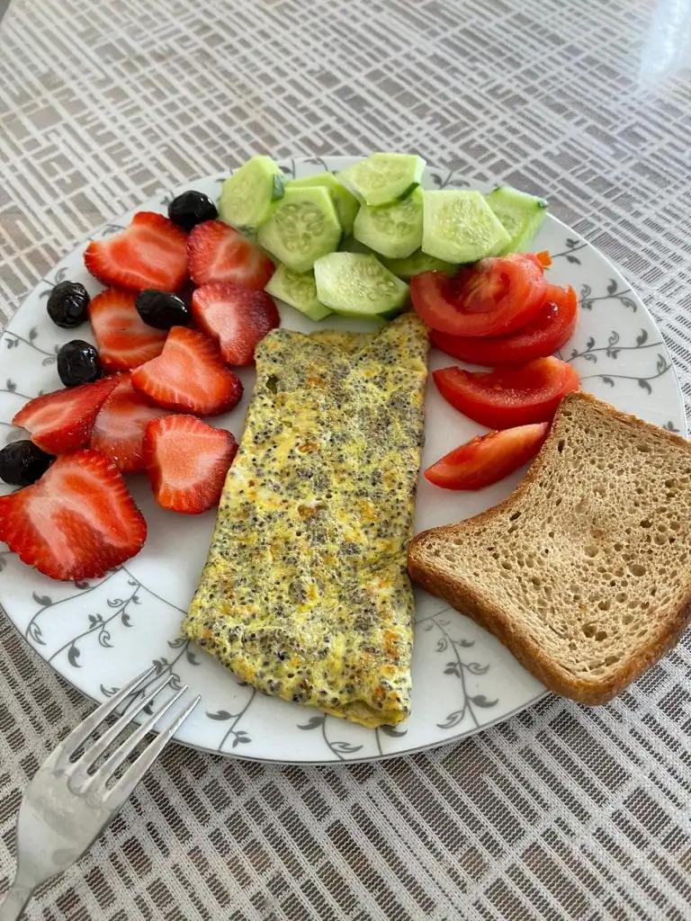 5 zeytin 2 çeri domates 1 salatalık 2 ceviz 2 dilim tam buğday ekmek