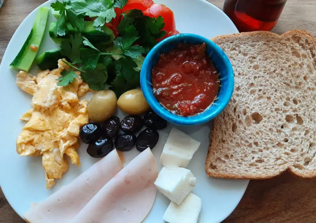 12.00: çemenli sahanda yumurta(2) 2 zeytin 1 tk tahinpekmez 1 dilim örgü peynir 2 tb ekmeği