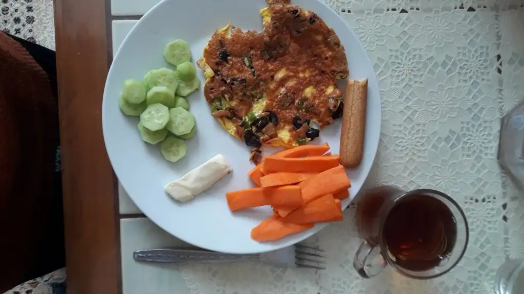 Sabah: çemenli yumurta tavada(1 yumurtalı) 6 zeytin 3 çeri domates 1tk tahinpekmez yeşillik 1 tb ekmeği böğürtlen çayı