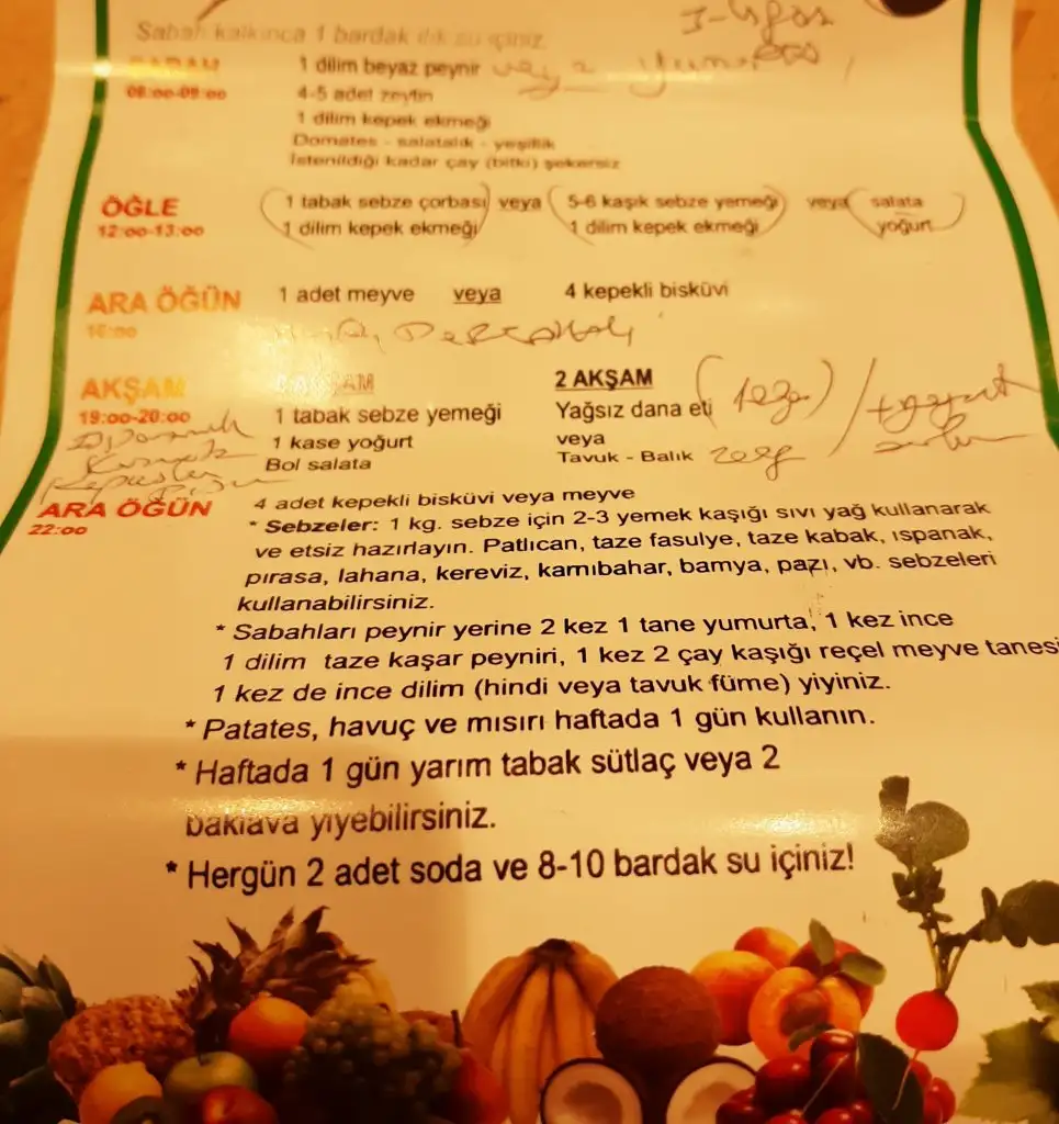 Sabah:haşlanmış yumurta , 5 zeytin , domates , salatalık, peynir 2 çatal, 1 dilim tam buğday