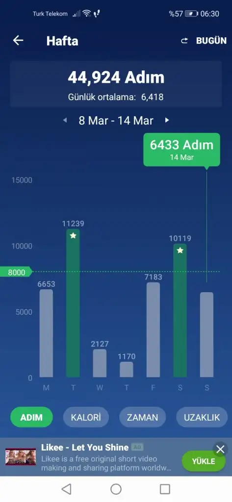 Aşağıda da attigim adımlarım ve yaktığım kcal var