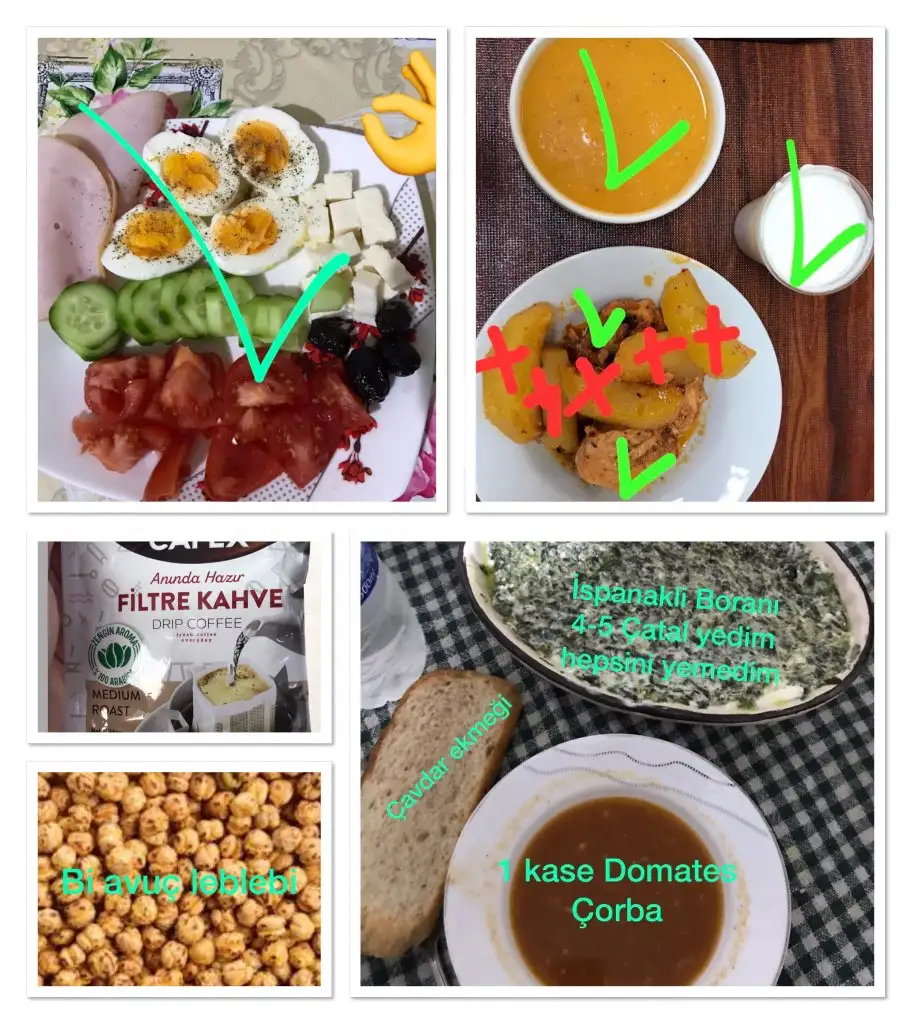Akşam 1 kase mercimek çorbası 1 küçük kase yogurt