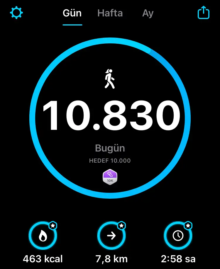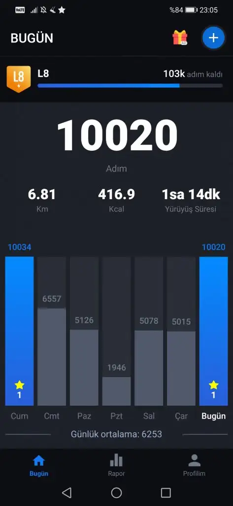 30 dk yürüyüş 7650 adım 255 p toplam 555 p