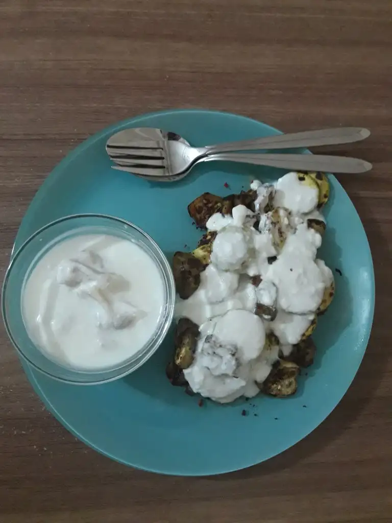 1 kabak 1 patlıcan 1 tatlı kaşığı zeytinyağıyla kızarttım