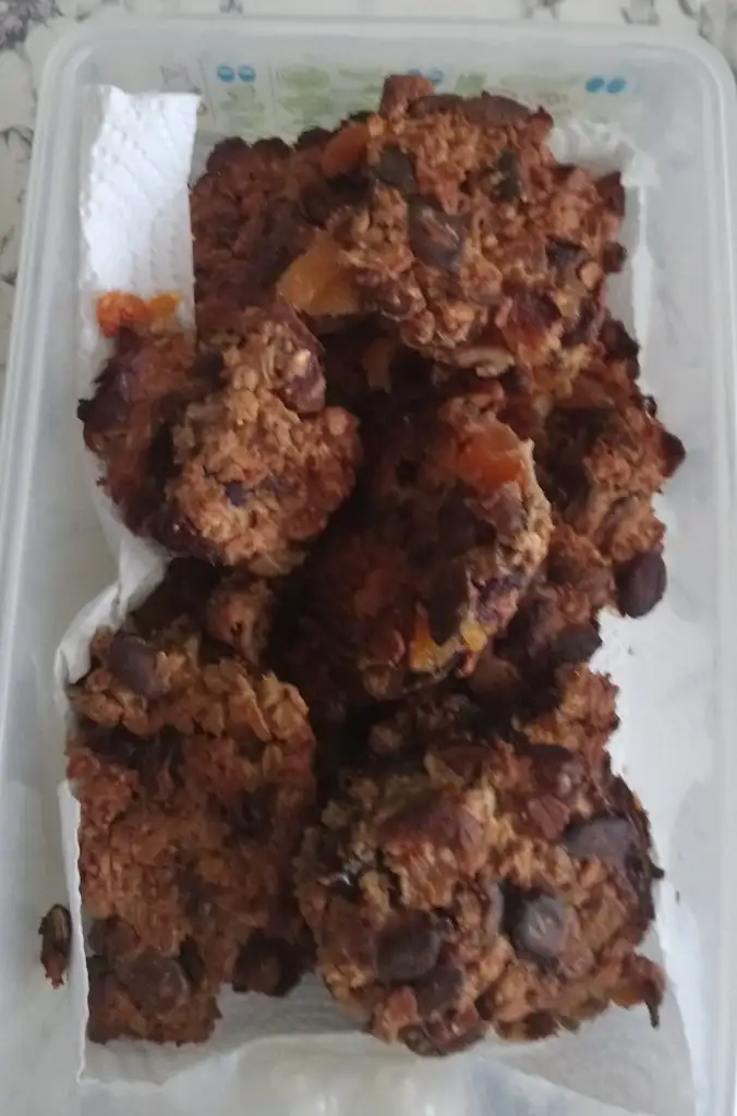 2 kş yulaf, 1 kş chia, kuruyemis, 3 hurma, 1 bar. Badem sütü