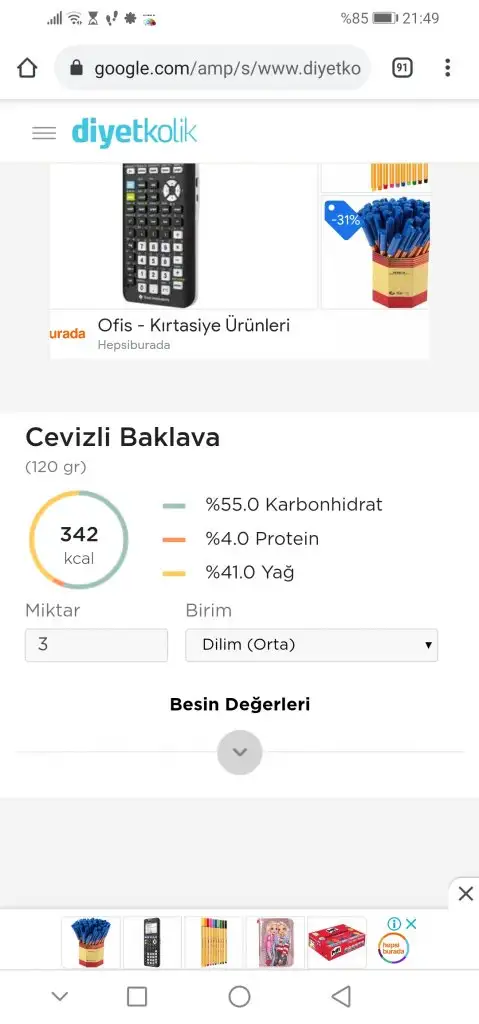 3 dilim baklava icin en düşük kaloriyi secmissin sanirim