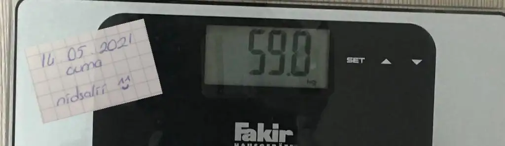 Ay çok ferahladım 2 bardak su içtim haha zorla wc yaptım canım acıdı biraz ama olsun yoksa 59,4 dü tartımYok canim 2kere baktım