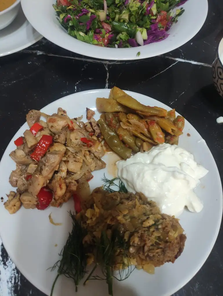 Akşam/2 kepçe çorba, 1 parça tavuk 1 ad patates,salata