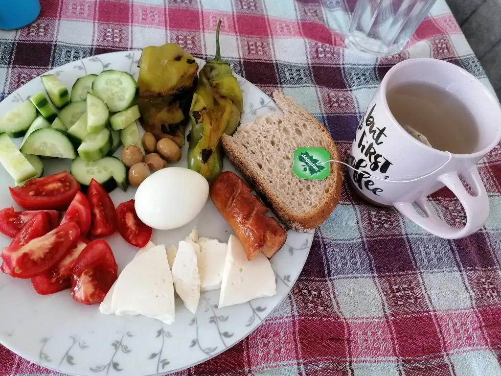 Sabah/ 1 domates 1 salatalık,,2 d.ekmek, 1 tk pekmez, 1 kk peynir,1 yumurta,1 d. Salam