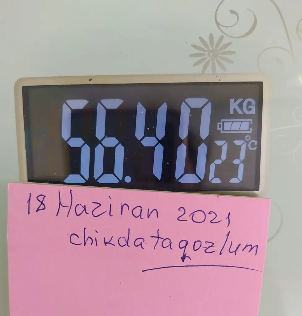 11 yasindaki kizim tartildi 59 gosterdi 55 kiloydu oda. Tarti silik rakamlar gosteriyo sanirim pili bitiyo.